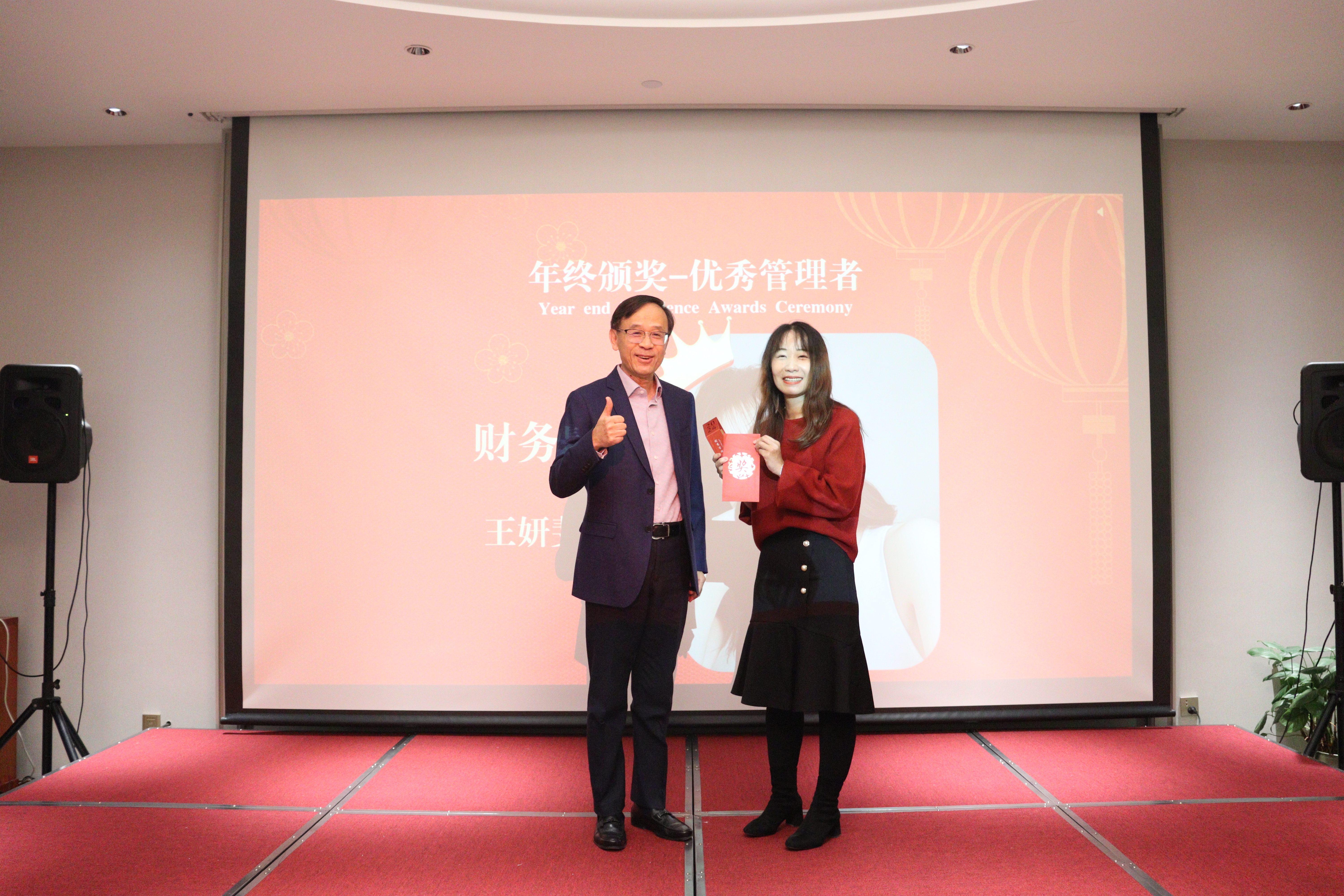 緊接著,年度優(yōu)秀管理者獎(jiǎng)項(xiàng)揭曉,財(cái)務(wù)經(jīng)理王妍斐憑借卓越的管理能力和出色的團(tuán)隊(duì)領(lǐng)導(dǎo)力榮獲此獎(jiǎng)項(xiàng)。康吉森股份總裁周政強(qiáng)為其頒獎(jiǎng)。