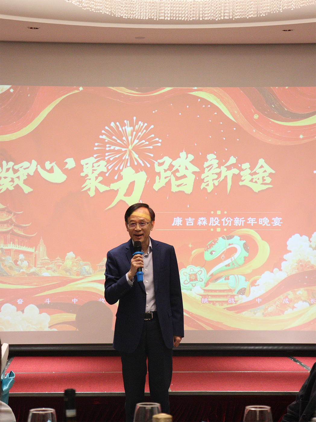 開場環(huán)節(jié),康吉森股份總裁周政強(qiáng)發(fā)表了新年致詞,他回顧了過去一年公司在各領(lǐng)域取得的顯著成績,對全體員工的辛勤付出表示衷心感謝,并對新的一年充滿期待,鼓勵(lì)大家繼續(xù)努力,為公司的發(fā)展再創(chuàng)佳績。